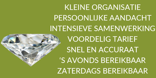 Als kleine organisatie staat Kien administraties garant voor persoonlijke aandacht en intensieve samenwerking. Kien zorgt voor een boekhouding die voldoet aan de wettelijke eisen, maar die toch begrijpelijk is. Verder kun je bij Kien zaken bespreken op momenten die voor jou het beste uitkomen, ook in de avonduren en op zaterdag. Zo kan Kien je snel en accuraat helpen met al je vragen. Uiteraard doet Kien dit voor een voordelig tarief.